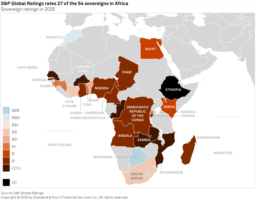 In 2025, the number of investment-grade sovereigns increased to four, from three, with ratings in the ‘BBB’ category--Botswana at ‘BBB’ and Morocco, Mauritius, and St Helena all at ‘BBB-’.
