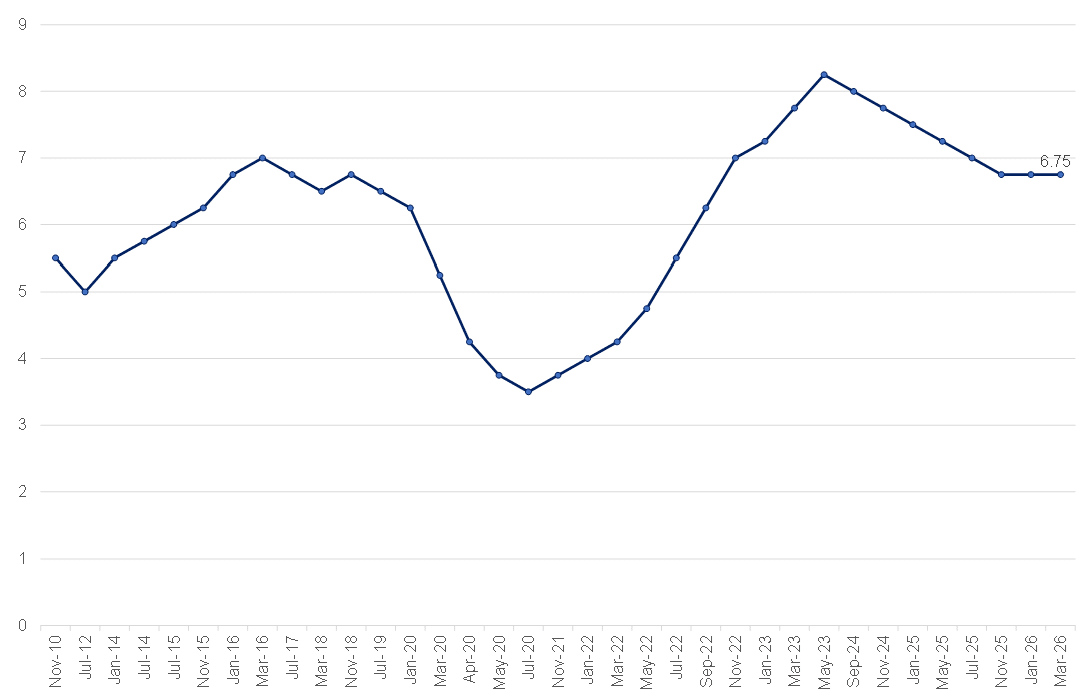 Our base-case scenario is that the interest rate remains on hold in the near term, with rate cuts deferred until there is greater clarity on the oil price trajectory and geopolitical developments. Conversely, a meaningful de-escalation in the conflict could quickly reopen the window for easing rates. However, for now, the bar for cuts has risen.